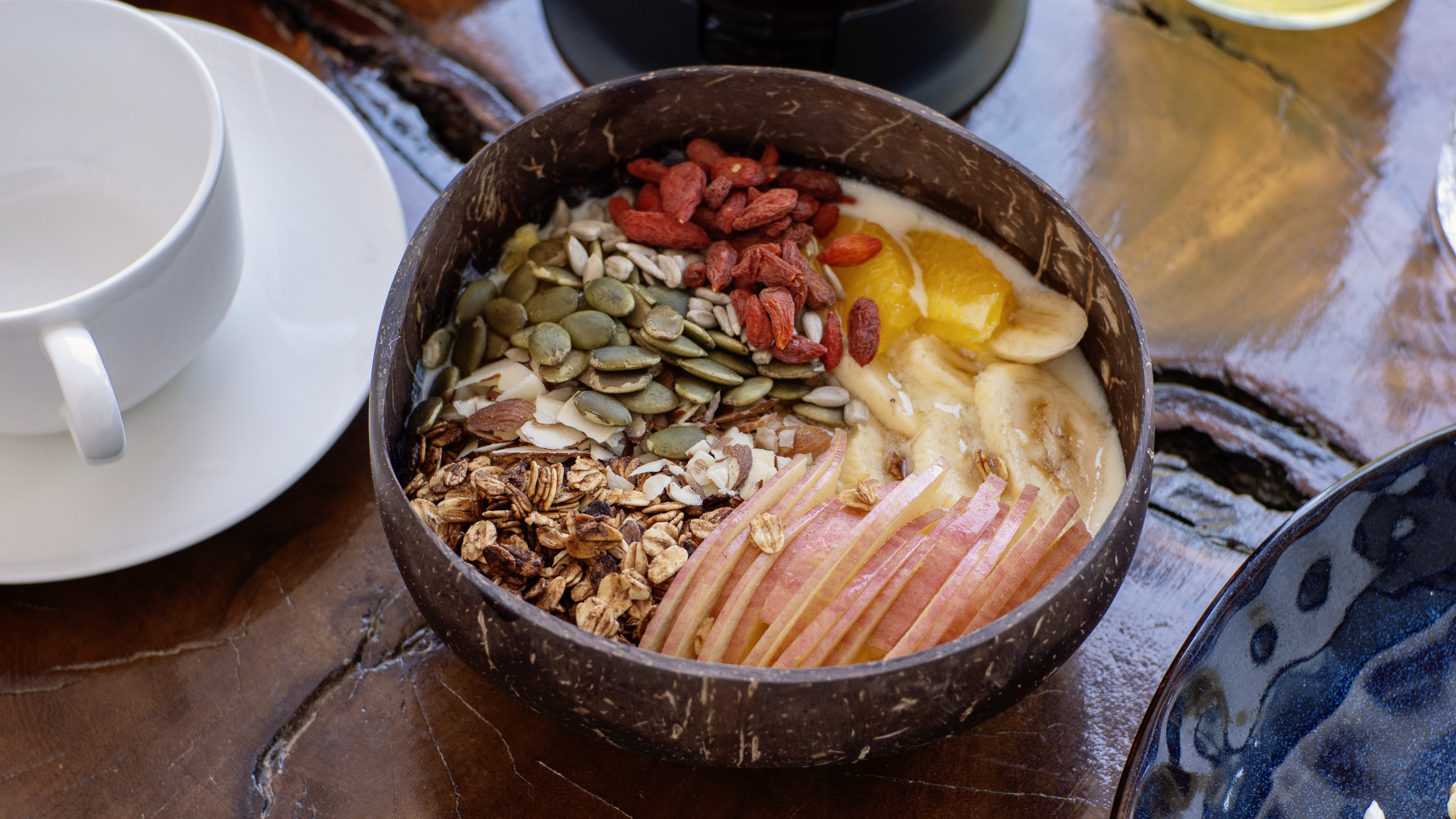 Fresh banana, orange & apple with homemade granola,