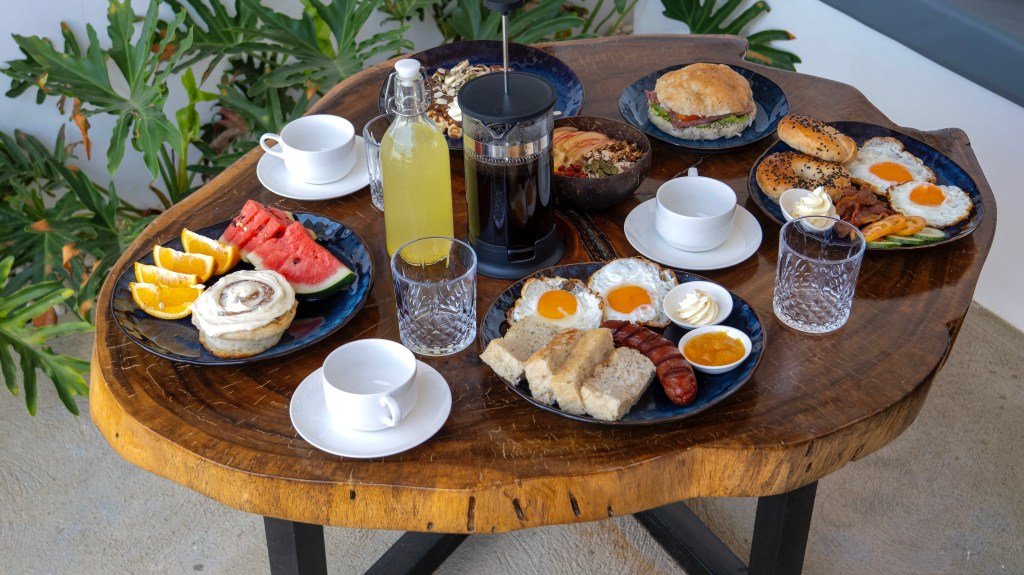 Wake up to a feast at MaBmaya Villas, with breakfast delivered straight to your villa for 500 PHP only. Savor the perfect morning with choices like a hearty plate of fried eggs with toast and sausage, a fresh bagel topped with crispy bacon and vegetables, a warm sandwich filled with ham and cheese, a colorful açai-style yogurt bowl with grains and fruits, or a fluffy Belgian waffle topped with bananas, almonds, and caramel. Each breakfast comes with a fresh juice to brighten your day — and of course, rich French press coffee to complete the moment. Take your time, enjoy every bite, and let the morning unfold in pure island comfort. All bread are handmade.